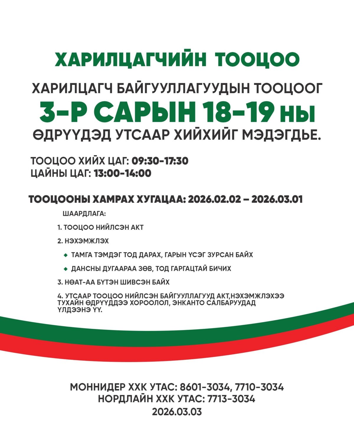 ХАРИЛЦАГЧИЙН ТООЦОО ХИЙХ ХУВААРЬ